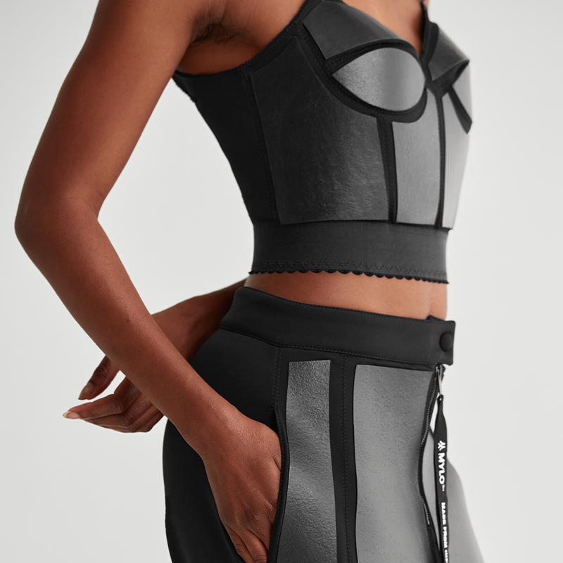 Our long-term collaborator and one of the first designers to work with Mylo, Stella made history when she designed the first ever Mylo garments and again with the release of the black Frayme Mylo – the world’s first commercially available luxury handbag made from mycelium. The first run of 100 editioned bags quickly sold out.