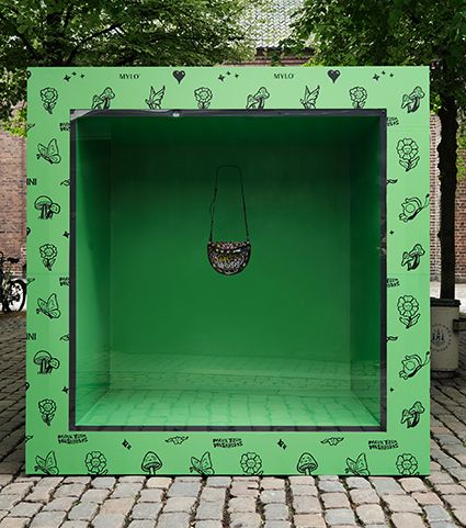 What better place to introduce our collaborative assortment than at the annual meeting of fashion’s most conscientious minds? During the Global Fashion Summit in Copenhagen, Denmark, June 7–8, GANNI unveiled their first Mylo products in a colorful pop-up display in Nikolaj Plads, giving the first glimpse of what’s to come with one-of-a-kind, hand-decorated saddle bags gifted to lucky raffle winners and a limited-edition drop of wallets available for purchase at GANNI’s Bremerholm store.