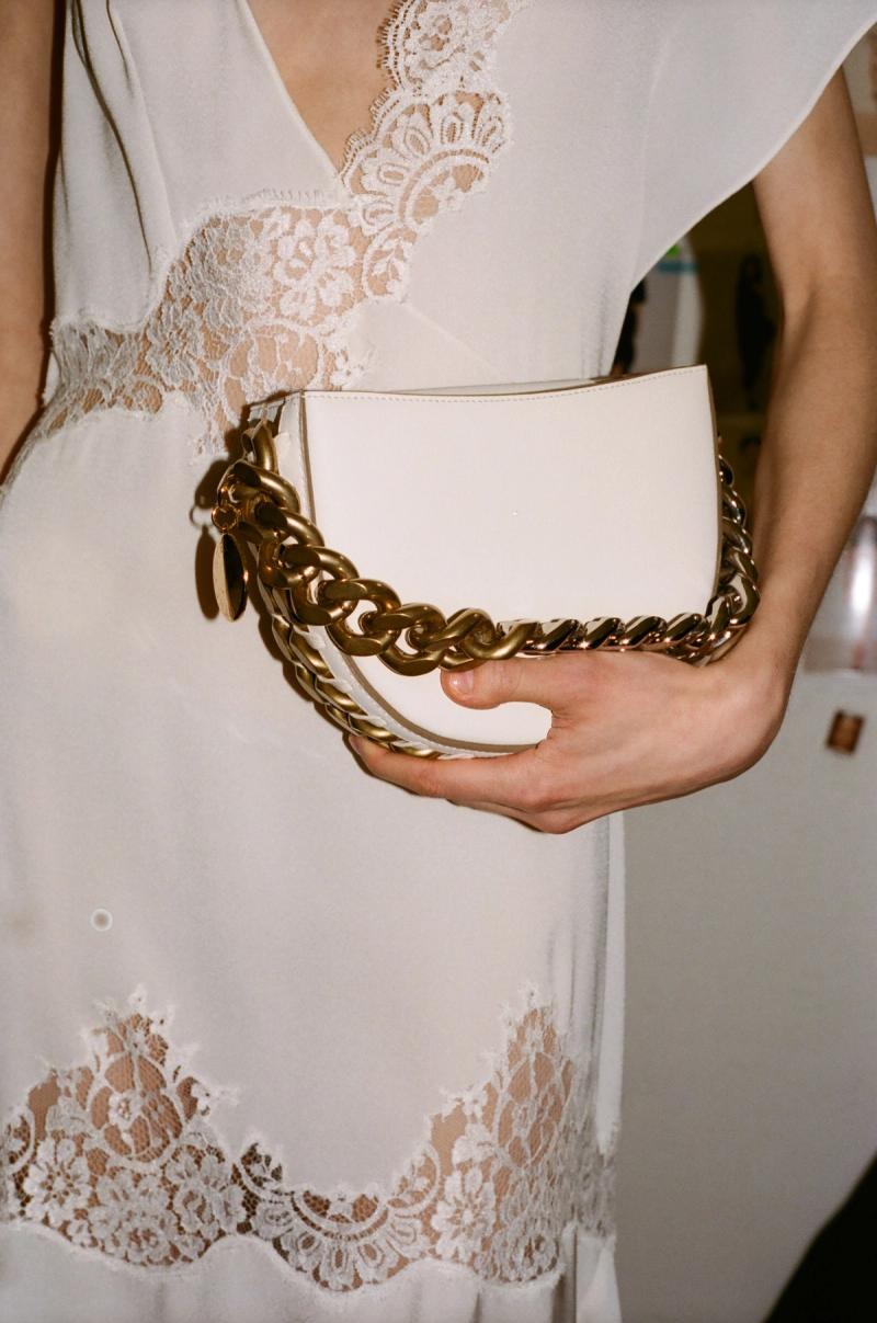 Stella's vision for this creamy addition to her Frayme bag series was to contrast the original design by debuting an elegant new color. The black Frayme Mylo™️ was the world’s first luxury handbag crafted from mycelium. Launched originally at the Summer 2022 show, the first run of 100 editioned bags quickly sold out. The bags have now been restocked, and her latest evolution of the timeless classic further demonstrates Stella's commitment to incorporating Mylo in collections to come.