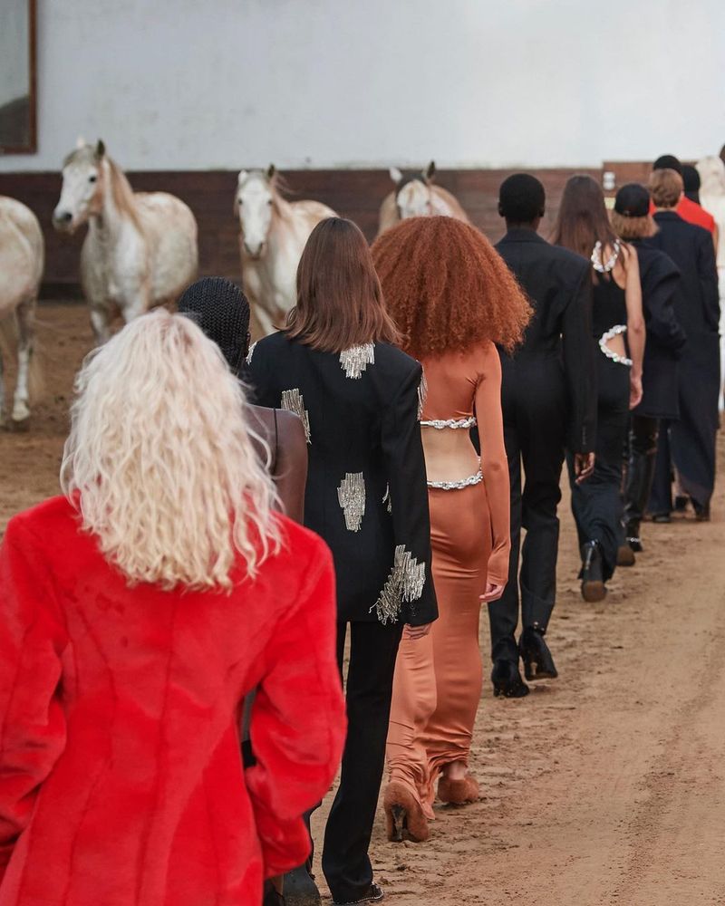 Inspired by her family's deep affection and storied history with horses, the show was a clear demonstration of Stella's personal love of animals and tireless commitment to cruelty-free textiles. Equestrian-inspired garments in molded shapes and heritage British checks defined the ready-to-wear collection, which was crafted from 92% responsible materials, making it the brand’s most conscious winter offering ever.