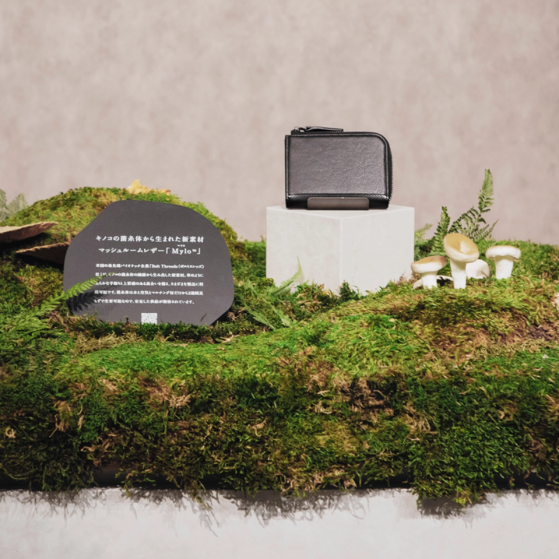 The products include the Mylo™ L Zip Purse by Tuchiya Kaban and the Mylo™ Wallet Bag and Mylo™ iPhone Case by objcts.io — each elegantly designed and finely tuned for everyday functionality. The products can be found in capsule displays at Tsuchiya Kaban flagship stores, surrounded by mushrooms and embedded in the ecosystem from which mycelium, Mylo’s key ingredient, is found.